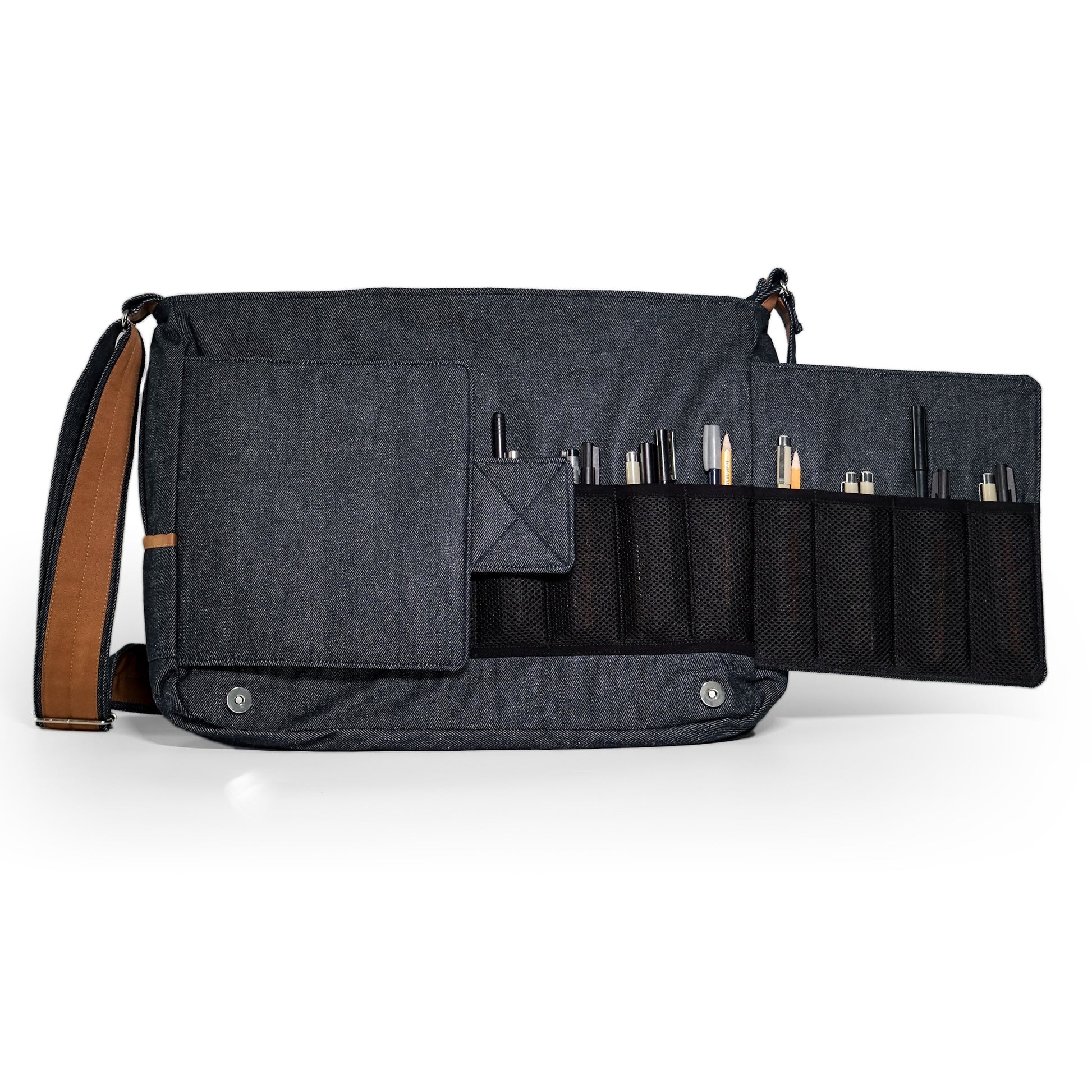 Introducing the largest of all our Arties! The ideal messenger bags for artists who love to carry their A3 sketchbooks and numerous tools. It keeps all your tools well organised and neatly displayed, ready to be grabbed when needed.