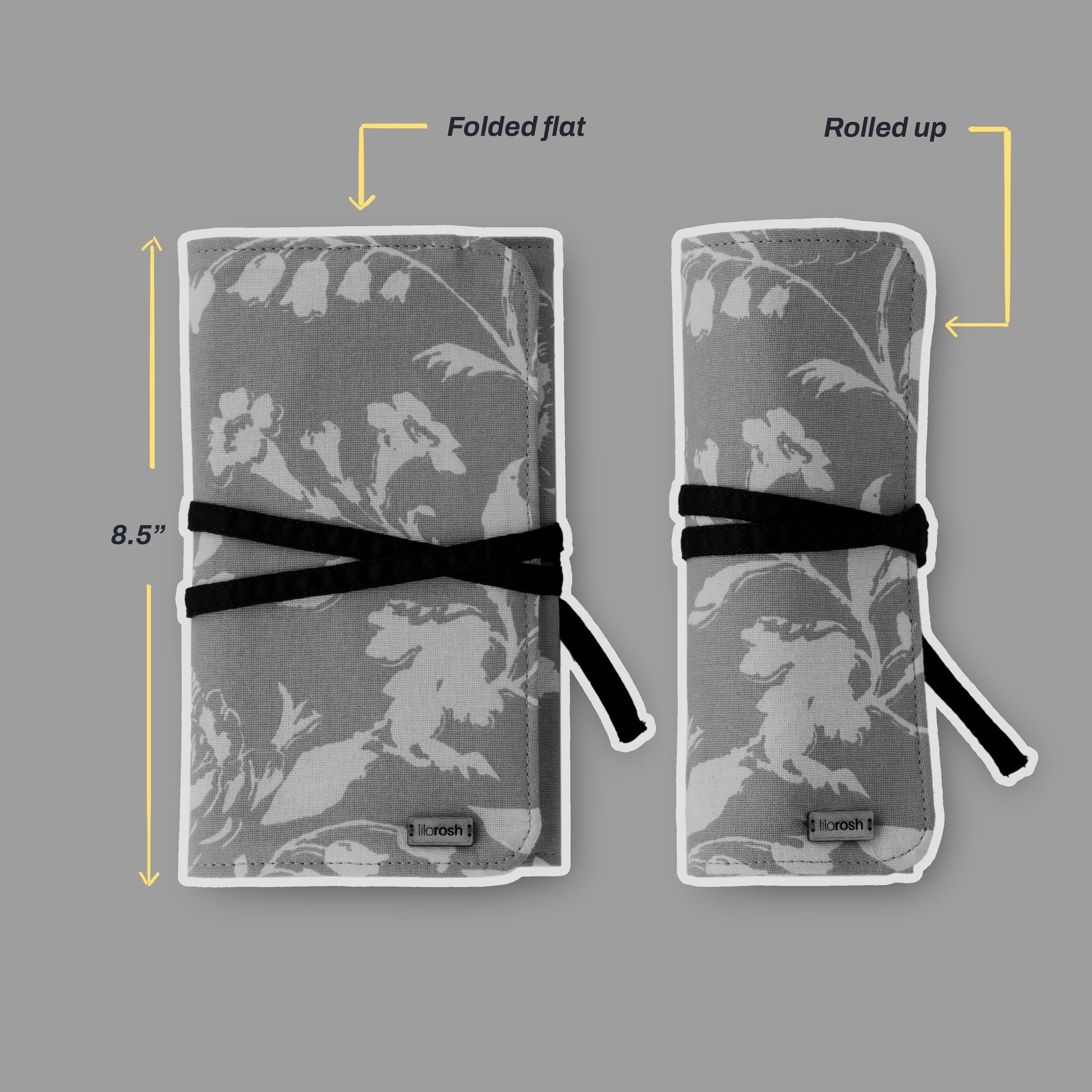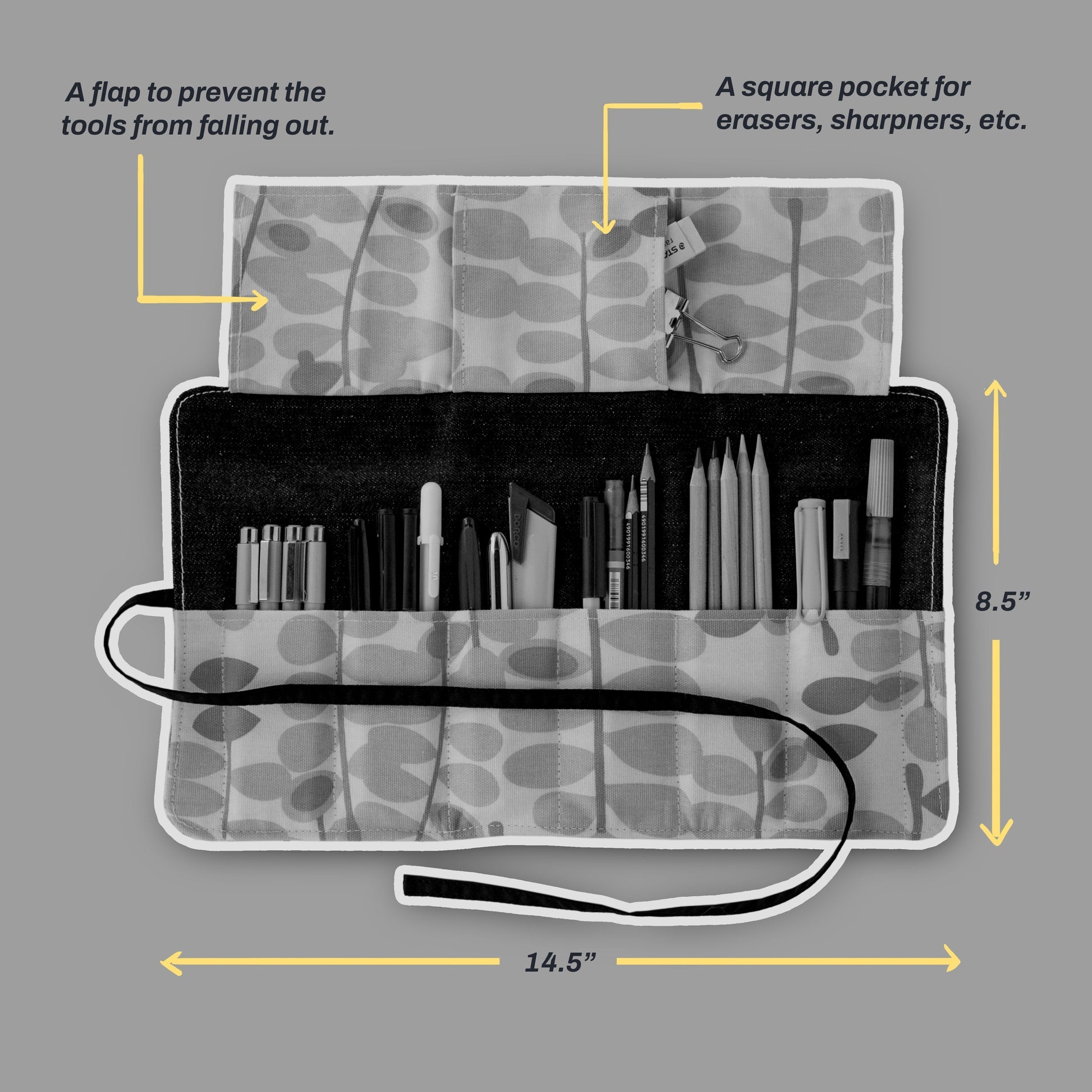 Introducing our take on the timeless classic - the artist's roll-up case. Crafted with the contemporary creative in mind, this beautiful and durable fabric kit allows you to store & carry your art supplies safely, and with ease.